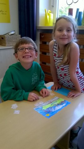 In einem Puzzle und einem Gesellschaftsspiel malten wir den Wasserkreislauf auf und führten kleine Experimente zum Verdunsten durch.