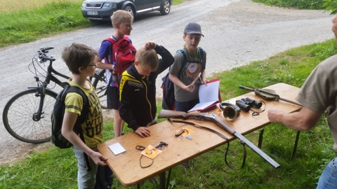 In kleinen Gruppen marschierten sie von Station zu Station, bestimmten Pflanzen und Bäume, erfuhren Wissenswertes über Brandschutz, Borkenkäfer, Waldarbeiterwerkzeuge, Müllvermeidung im Wald und natürlich über die Tiere des Waldes.