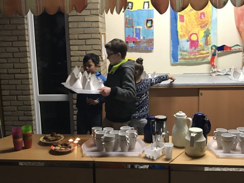 Zum Martinstag backten die Eltern der Erstklässler/innen wie jedes Jahr Waffeln für die Grundschulkinder.